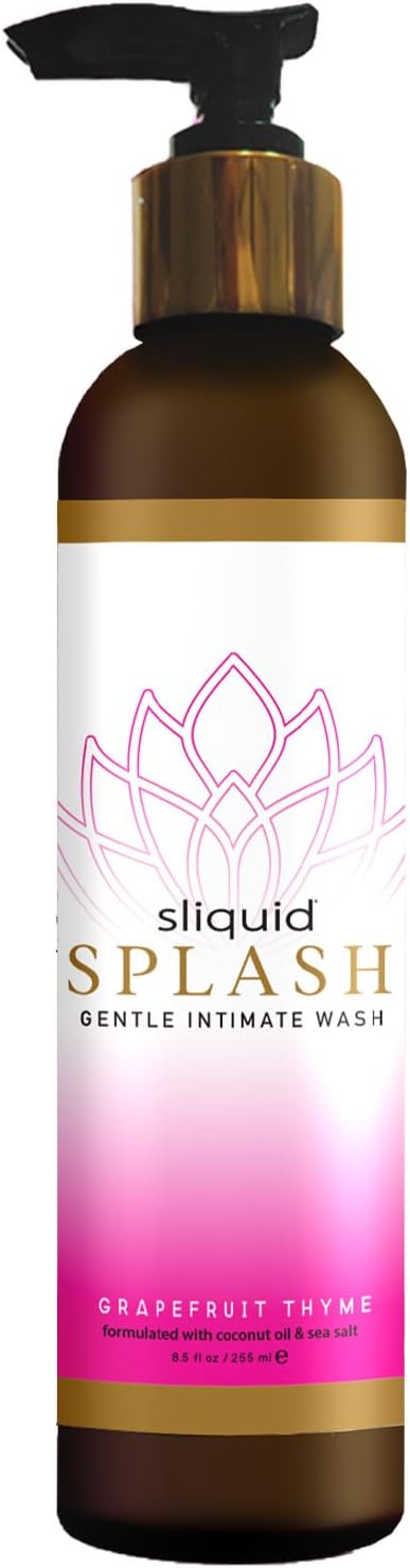 Sliquid Splash is a gentle intimate wash, with a completely glycerine and paraben-free formula. There are four formulations of Splash: Naturally Unscented, Honeydew Cucumber, Grapefruit Thyme, and the new Mango Passion. All are great alternatives to traditional soap and water and other harsh detergents. Fragrance formulas are blended with essential oils, coconut derivatives, and sea salt. Our gentle feminine washes are perfectly balanced to complement a woman’s PH.